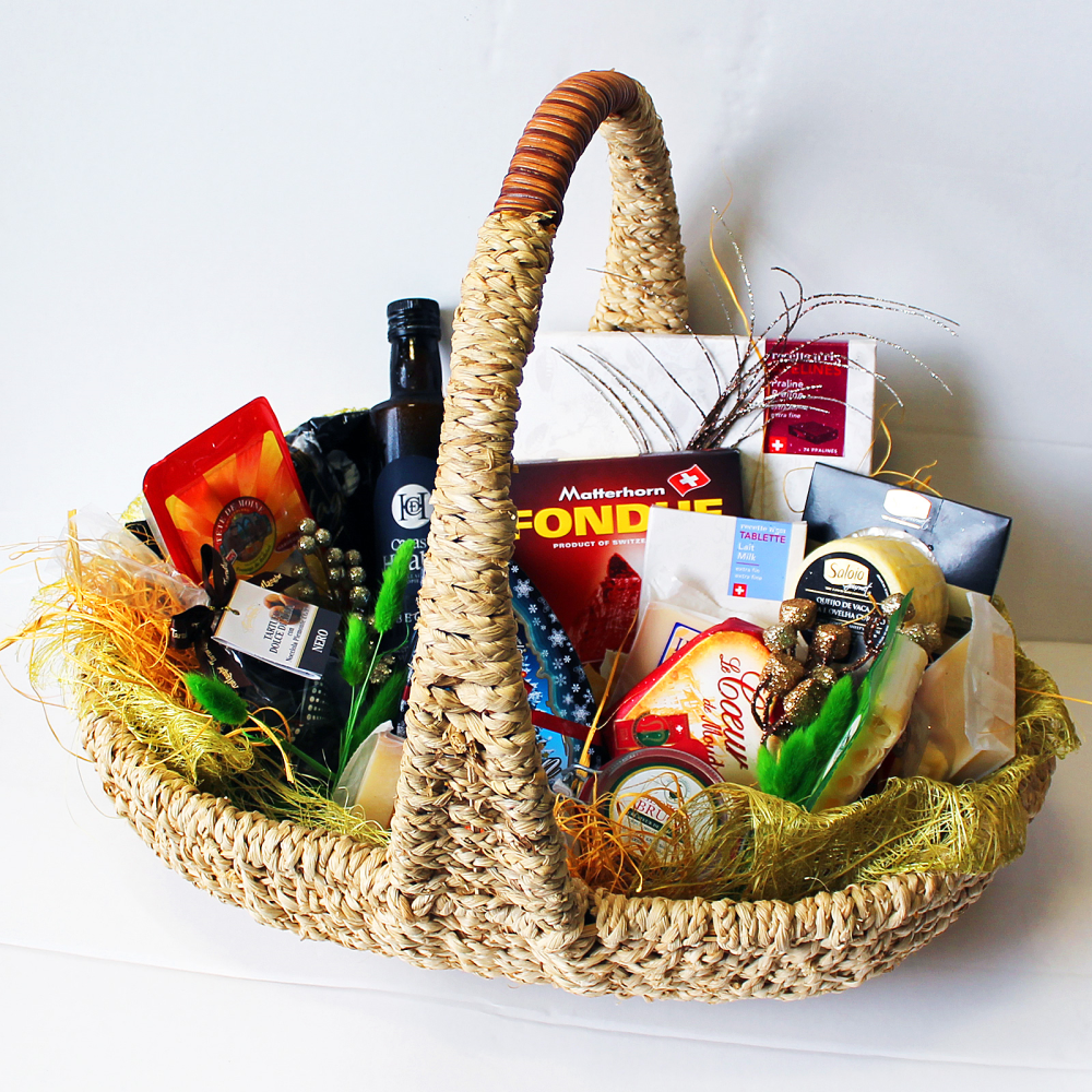 - Многие магазины предлагают подарочные корзины с продуктами. Вы можете составить такую сами, учитывая вкусы и предпочтения мамы с папой.