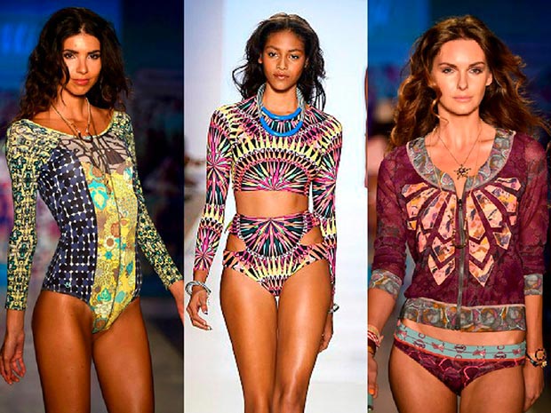 Лидеры всех подиумных показов – цельные купальники, выгодно скрывающие и подтягивающие формы. Этим летом преимущество у моделей с геометрическими принтами, длинными рукавами, в полоску и высокой шеей (high neck).